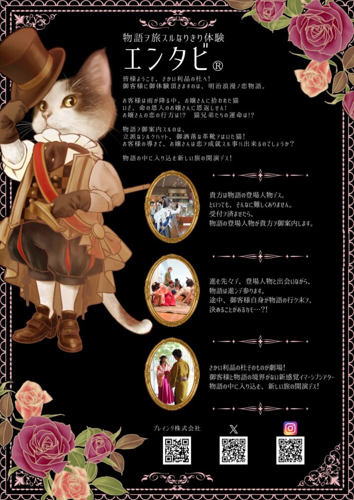 観客の皆様にはお嬢さんに拾われた猫に扮し、お嬢さんが思いを寄せる「かの人」との恋を成就させるべくミニゲームを行いながら恋の行方を見守っていただきました。