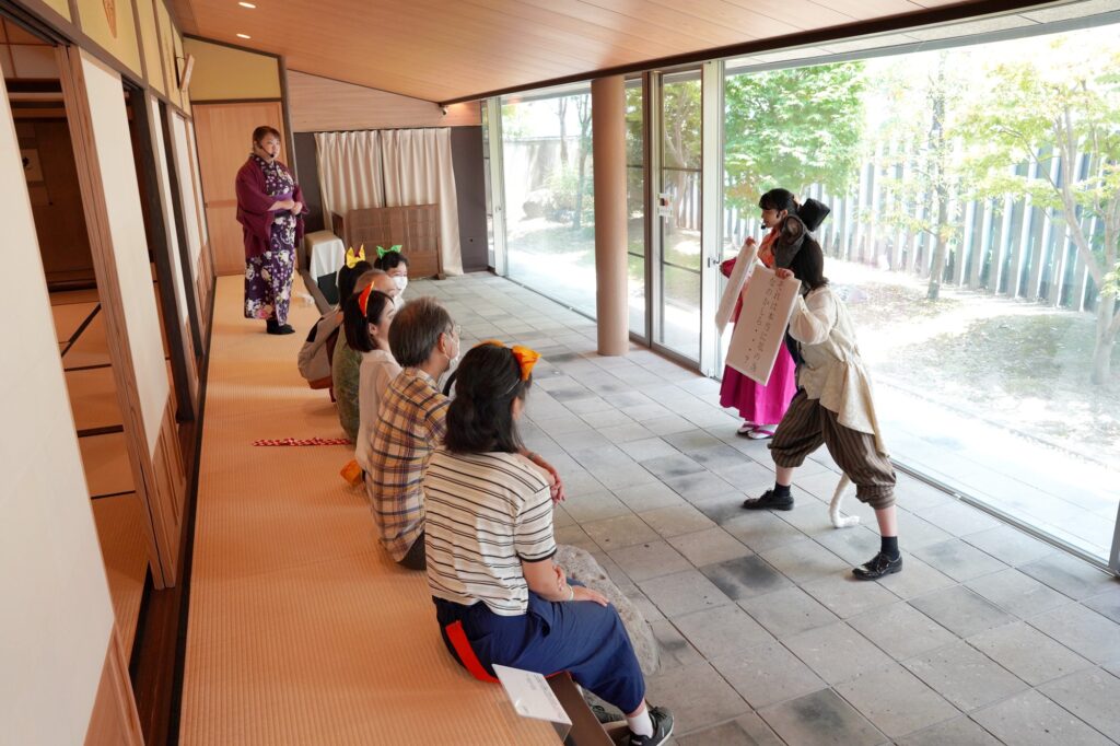 ・猫耳をつけるのは恥ずかしかったですが、親子で参加したので我が子の可愛い姿を見ることできたのでよかったです。劇中で与謝野晶子の歌を実際に聞くことができて、より展示に興味を持つことができました。(40代男性)
